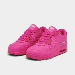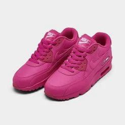 Girls’ Big Kids’ Nike Air Max 90 Leather Casual Shoes Laser Fuchsia/White – 833376Â 603