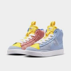 Girls’ Little Kids’ Nike Blazer Mid ’77 SE Dance Stretch Lace Casual Shoes Cobalt Bliss/Opti Yellow/Hyper Royal/Red Stardust – DQ6085Â 402